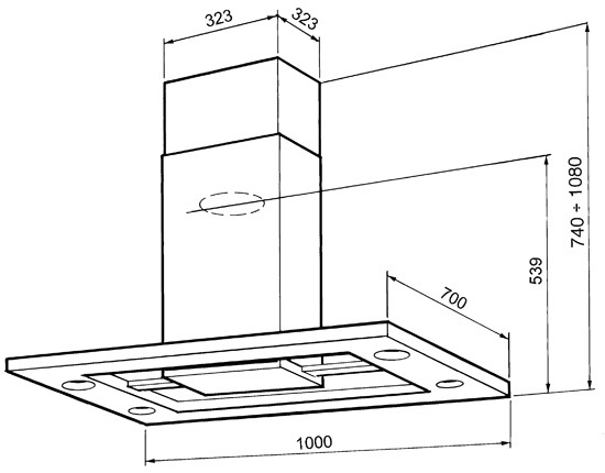 У многих встраиваемых моделей глубина может регулироваться, а рабочая всасывающая поверхность — увеличиваться благодаря выдвижному козырьку, но габариты корпуса такой вытяжки должны соответствовать размерам подвесного шкафа. Выбирать основные размеры вытяжки с соблюдением всех требований эффективности и безопасности работы следует также не в ущерб общему дизайну помещения.