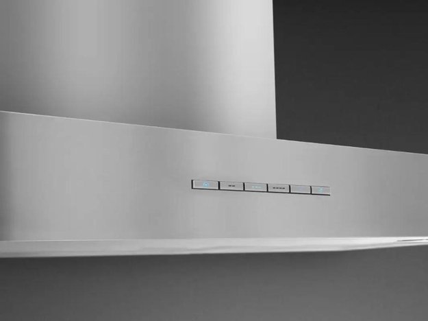 Часто кнопки или слайдеры находятся на фронтальной части устройства с правой стороны, чтобы их было удобнее переключать правой рукой и бывают скрыты выдвижным экраном. В больших купольных моделях кнопки специально выполняются так, чтобы бросаться в глаза: это заметная часть отделки устройства. Так, медные или латунные кнопки на светлом фасаде подчеркивают классический дизайн вытяжки и гармонируют с окантовкой из металла или натурального дерева. В таких моделях обычные кнопки или слайдеры могут заменяться более стильными поворотными переключателями.