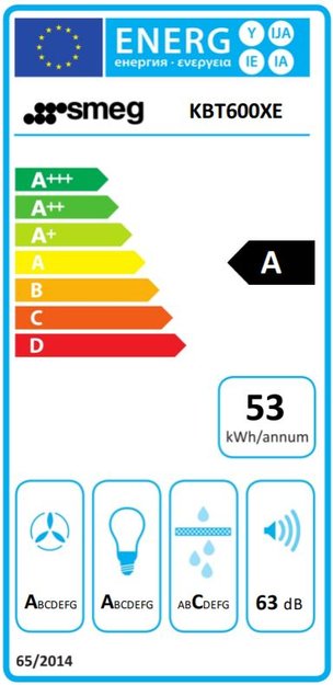 Smeg KBT600XE — настенная вытяжка в цвете нержавеющая сталь. Имеет электронное управление с помощью кнопок и LED-подсветку двумя лампами. Предусмотрен интенсивный режим, когда вытяжка работает на максимальной скорости, чтобы ускорить удаление даже самых стойких запахов.