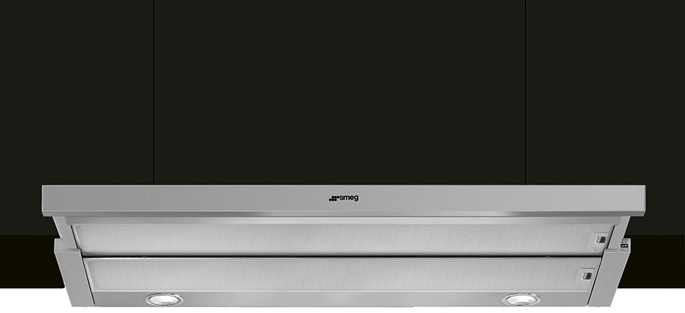Можно выделить два основных вида вытяжек с выдвижной панелью. В вытяжках, встраиваемых в подвесной шкаф, выдвижная панель необходима, так как размеры таких устройств определяются размерами самого шкафа. В закрытом состоянии глубина вытяжки может быть меньше глубины варочной поверхности. Телескопическая выдвижная панель, которая устанавливается преимущественно в устройствах, работающих в режиме отвода, гарантирует полный захват воздуха, загрязненного каплями жира, частицами сажи, испарениями. Панель можно выдвинуть как нажатием на кнопку, так и потянув за ее переднюю часть. В некоторых моделях при подобном выдвижении одновременно включается подсветка. Когда же панель убрана, вытяжка становится практически незаметной — такой вариант лучше всего подходит для небольшой кухни.