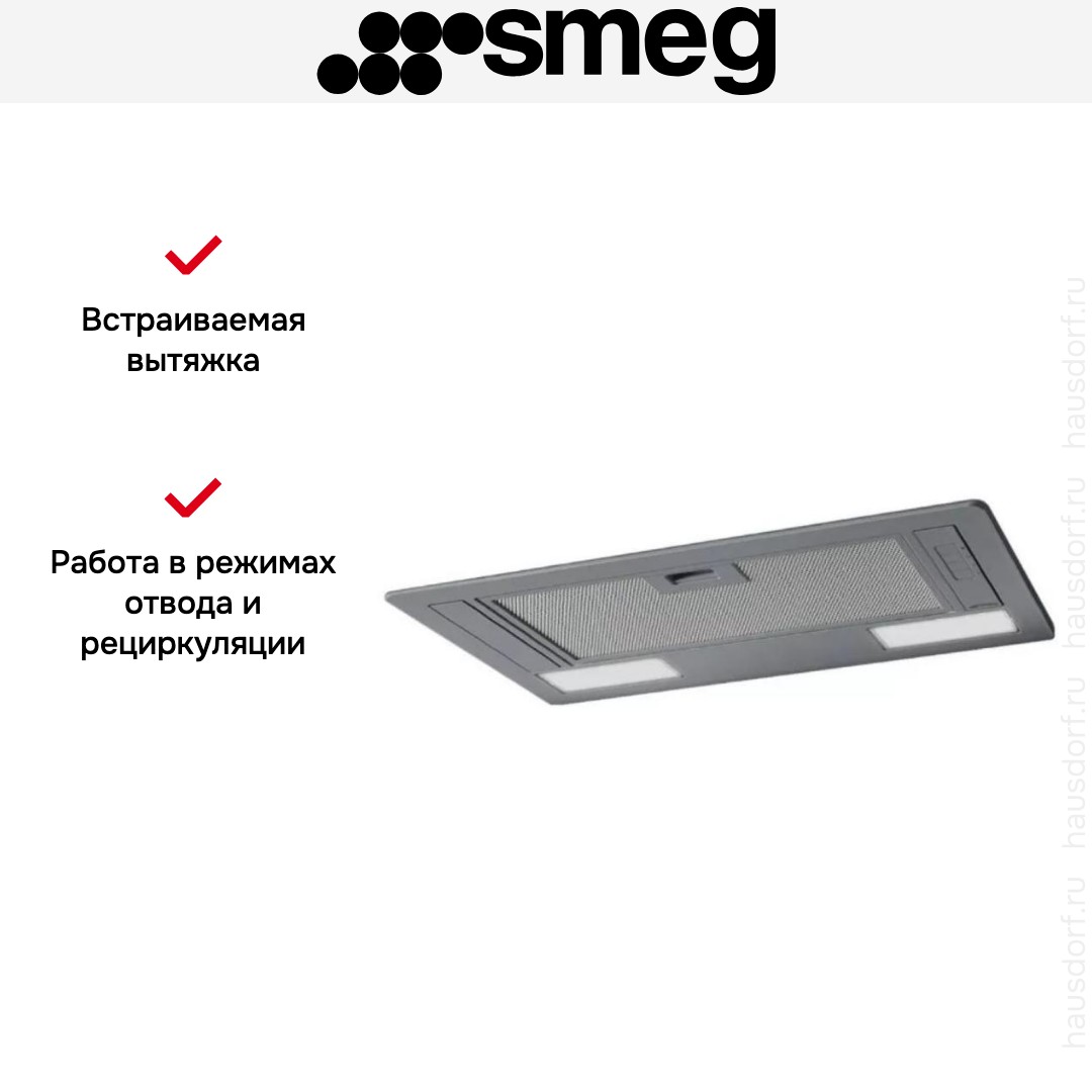 Вытяжка Smeg встраивается в подвесной шкаф над варочной панелью. Мощный мотор и жироулавливающий алюминиевый фильтр позволяют быстро отводить загрязненный воздух. 2 лампы освещают рабочую поверхность. Ширина 60 см позволяет устанавливать ее в малогабаритной кухне с невысоким потолком над варочной поверхностью на две, три или четыре конфорки. На небольшое помещение рассчитана и максимальная производительность всасывания, которая составляет 368 м3/ч. Фасад изготовлен из устойчивой к повреждениям эмалированной стали. Универсальный серебристый цвет гармонирует с интерьерами в современном стиле.