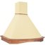 Еще один универсальный цвет — белый, он особенно хорошо подходит для небольших кухонь, так как зрительно способен расширить пространство. На белом фона меньше заметны капли воды и даже частицы жира. В классическом или античном белом выполняются купольные и каминные вытяжки, угловые и встраиваемые модели. Светлые кремовые тона, оттенок слоновой кости — наиболее распространенный вариант для больших вытяжек с окантовкой из натурального дерева.