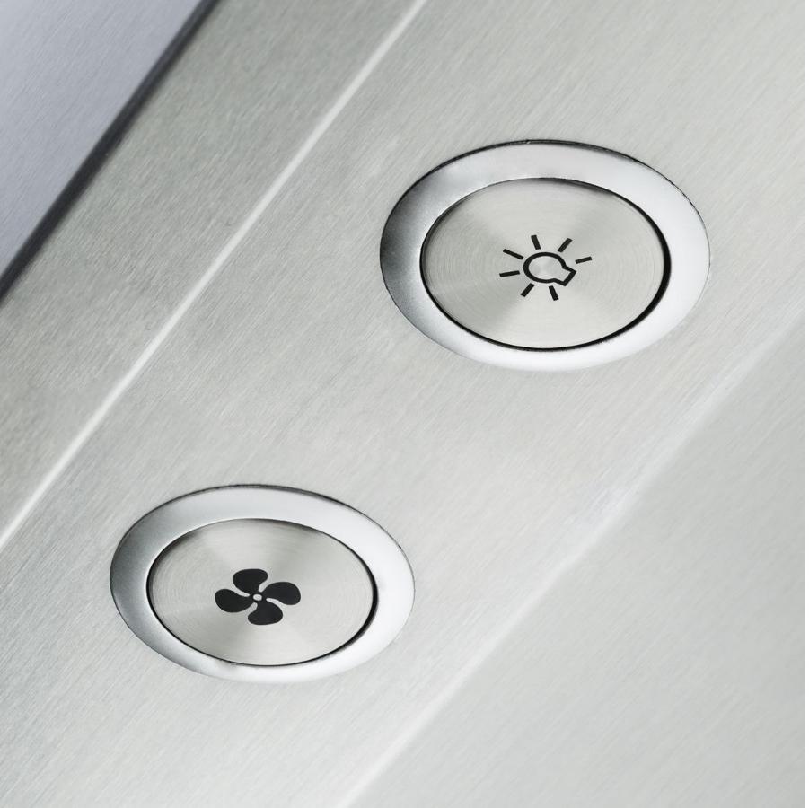 Наиболее распространенным элементом управления являются кнопки — ими оснащаются устройства с механическим управлением. Кнопки можно увидеть у вытяжек всех типов, от простых встраиваемых до дизайнерских подвесных, островных или наклонных. Количество кнопок зависит от набора функций: в простейшем случае достаточно всего трех кнопок — двух для переключения скоростей и одной для включения освещения. Как правило, они имеют круглую форму, однако производители предлагают устройства с квадратными и даже треугольными кнопками. В больших купольных вытяжках кнопки могут изготавливаться из меди, бронзы или латуни, а моделях современного дизайна — оснащаться подсветкой.