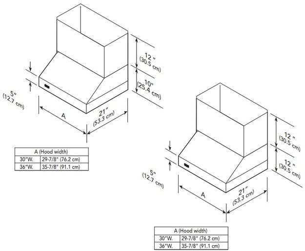 Для удобства пользователя следует выбирать вытяжку так, чтобы глубина даже самого большого купола не превышала глубину столешницы. У большинства современных купольных моделей глубина точно равна ширине, поскольку и стандартные варочные поверхности чаще всего имеют квадратную форму. Это значит, что вытяжка должна располагаться точно над поверхностью плиты, так, чтобы их оси совпадали. Стандартные размеры глубины таким образом могут составлять 30, 45, 50, 60, 80, 90, 100, 120 см.