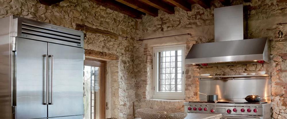 Купольные модели выпускаются с креплением к стене. Благодаря своей конструкции они отличаются увеличенной площадью всасывания, способны вместить большой вентилятор и сразу несколько фильтров. Такие приборы устанавливают, как правило, в кухнях достаточно большой площади. Одним из видов купольных вытяжек считаются каминные, которые из-за своей формы, воспроизводящей традиционный камин, устанавливаются в кухнях классического стиля.
