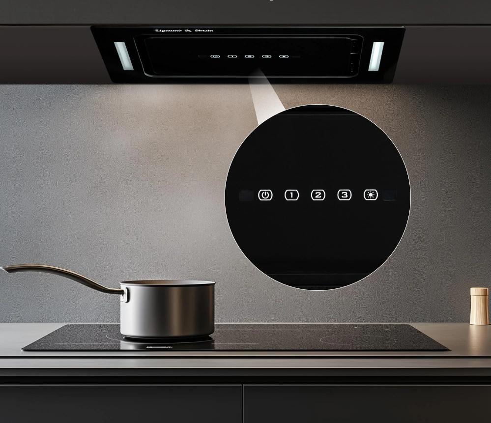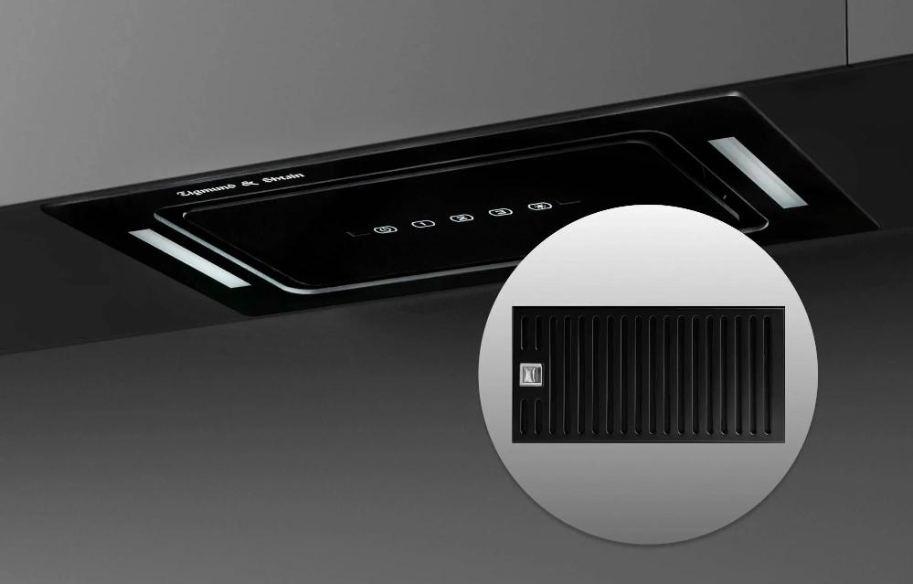 Вытяжки, встраиваемые в столешницу — эффективная инновация, которая подойдет для установки в кухне любой площади. Такие вытяжки размещаются за варочной поверхностью или рядом с ней. В отключенном состоянии всасывающая панель находится под столешницей, но после включения одной или нескольких конфорок она автоматически выдвигается при помощи специального лифтового механизма. Загрязненный воздух улавливается, не успевая распространиться по помещению. Когда вытяжка убрана, на виду остается только сенсорная панель управления. Недостатком подобных моделей является только сравнительно высокая цена.