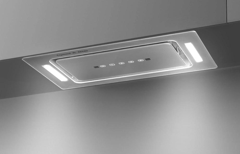 Вытяжка, встраиваемая в потолок, часто устанавливается над кухонным островом в просторной кухне и отличается достаточно высокой мощностью: она может работать как в режиме рециркуляции, так и в режиме отвода, так как воздуховод также скрыт в потолке. Вытяжки могут монтироваться в подвесной потолок либо устанавливаться в специальные многоярусные конструкции из гипсокартона непосредственно во время ремонта кухни. Для управления ими используется пульт ДУ.