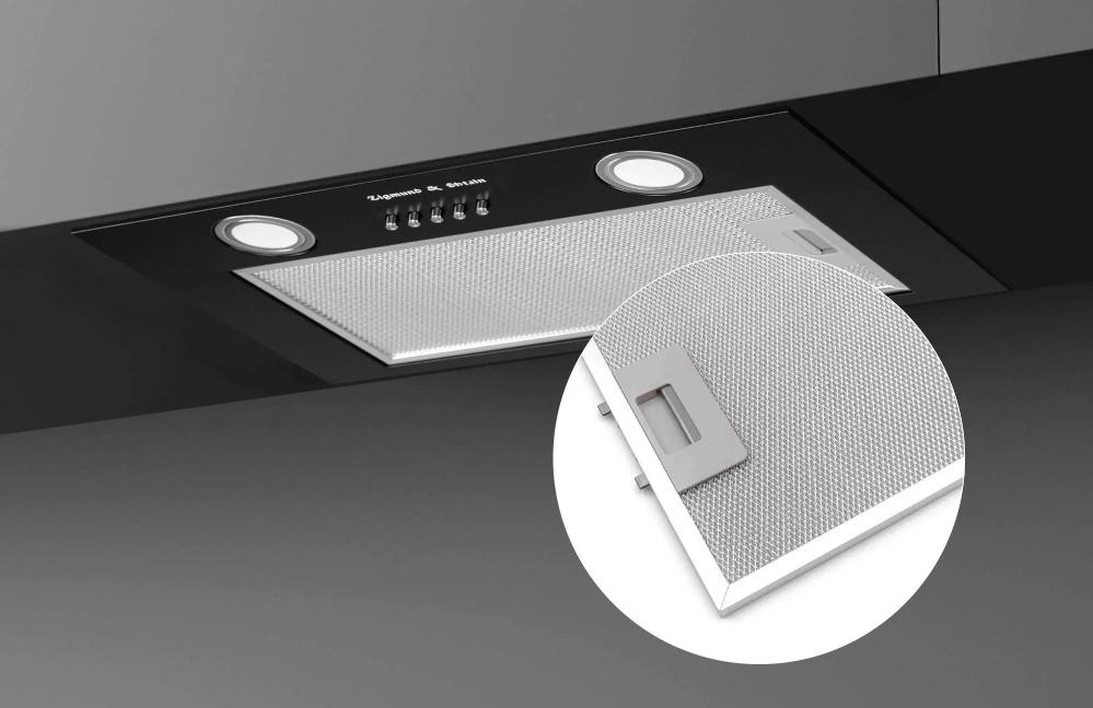 Все современные вытяжки оборудованы системой фильтров, обеспечивающей очистку воздуха и защиту двигателя от капель жира, водяных паров, частиц сажи и других загрязнений. Большинство вытяжек комплектуется сменным жироулавливающим фильтром, который представляет собой конструкцию из рамки со вставленными в нее слоями металлической сетки — как правило, алюминиевой или стальной. Обычно устанавливают 1 или 2 штуки, реже 3 или 4.
