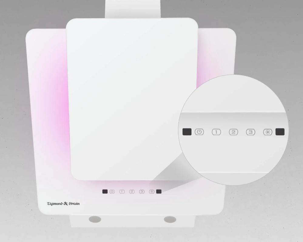 Данная вытяжка крепится на стену и имеет наклонную фронтальную панель, что придает изюминку дизайну и позволяет сохранить свободное рабочее пространство внизу. Обратите внимание на цветовые сочетания модели Zigmund Shtain K 150.6 W, чтобы органично вписать ее в свою квартиру. Оттенок корпуса: белый. Благодаря лампочкам, которые расположены на нем, можно освещать плиту и столешницу рядом, чтобы готовить было еще проще и приятнее.
