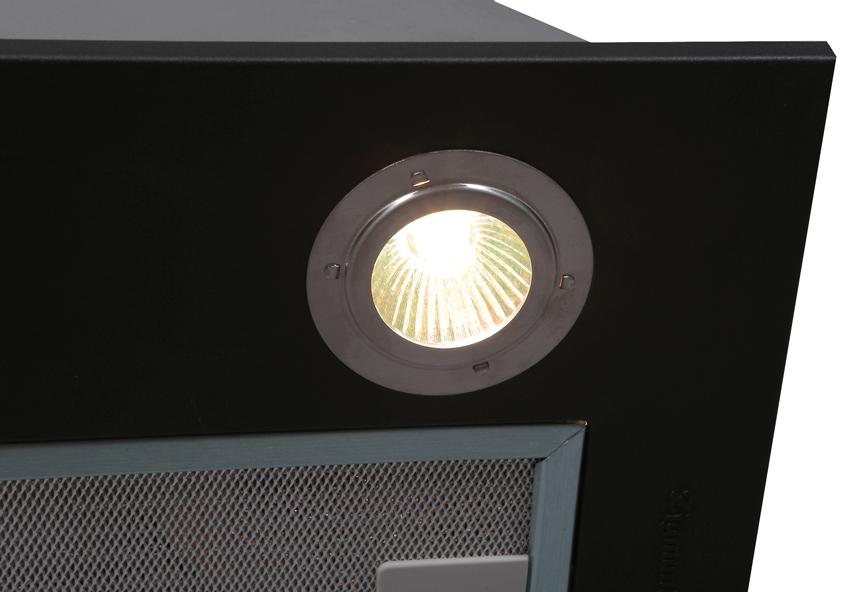 Встроенное освещение — функция, которая присутствует практически во всех современных вытяжках. Центрального освещения часто недостаточно для хорошего обзора рабочей зоны, особенно если над ней установлен подвесной шкаф. Интегрированные в вытяжку лампы позволяют готовить с комфортом, не напрягая зрение, их можно включать независимо от использования самой вытяжки.
