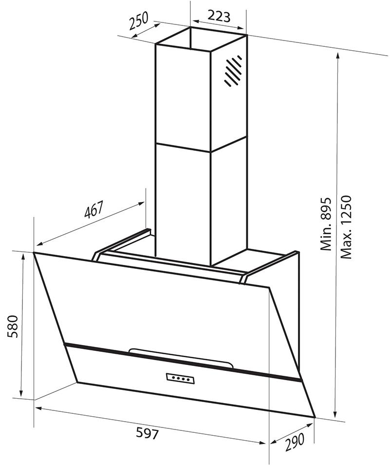 Встраиваемые и простые настенные модели, как правило, оснащаются боковой панелью управления, состоящей из нескольких кнопок. Их количество зависит от числа скоростей, наличия интенсивного режима и встроенного освещения. Боковое расположение панели управления делает вытяжку еще более незаметной.