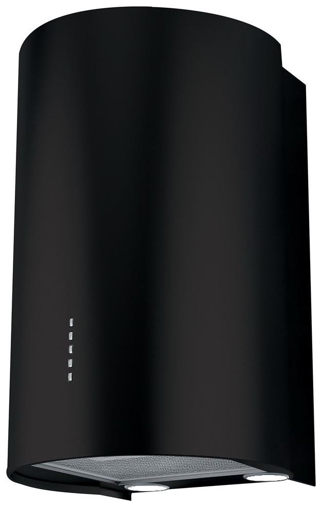 Цилиндрическая вытяжка с настенным креплением — довольно необычное решение для кухонного интерьера. Такая модель отлично впишется в современный дизайн, пространство лофта. Корпус выполнен в черном цвете, который позволяет экспериментировать с комбинациями оттенков в окружающей мебели и технике.