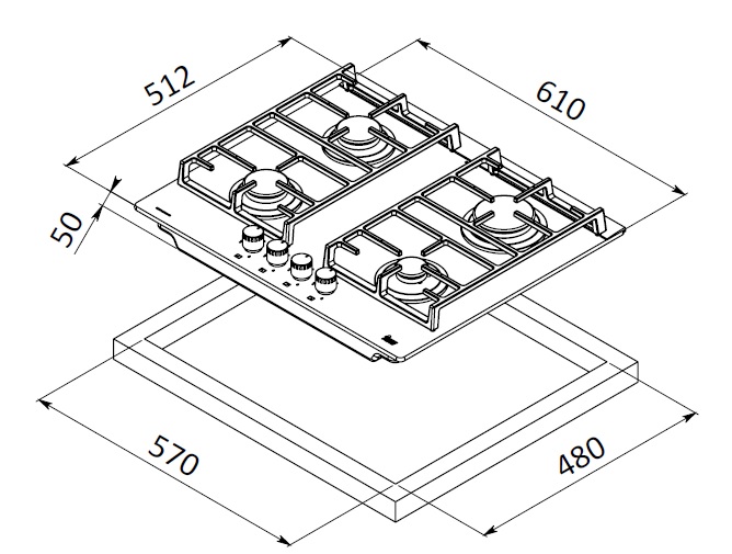 Teka CGW LUX 60 4G AI AL TR CI NAT - схема встраивания к варочной панели на разных языках на Hausdorf