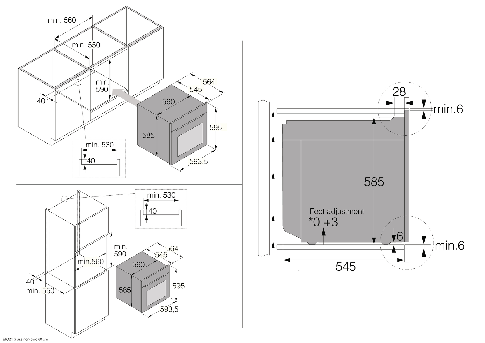 Asko OCS56BGH - схема с размерами к духовому шкафу на разных языках на Hausdorf