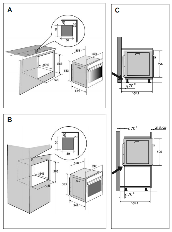 De Dietrich DOE7220X - схема встраивания к духовому шкафу на разных языках на Hausdorf