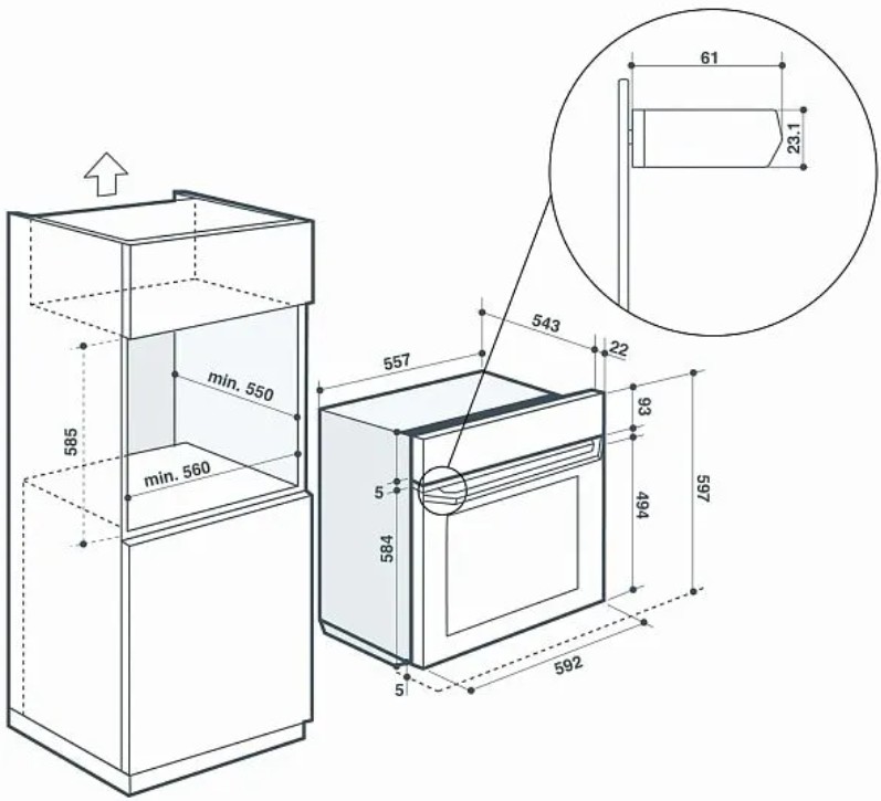 De Dietrich DOR4747X - схема встраивания с размерами к духовому шкафу на разных языках на Hausdorf