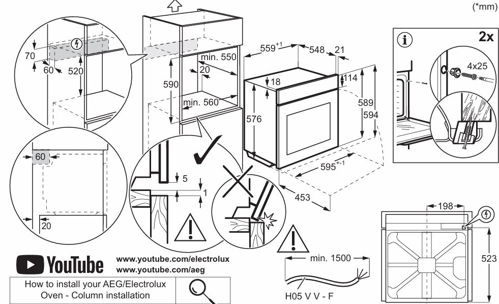 Electrolux EOD6P66WX - схема встраивания версия 2 к духовому шкафу на разных языках на Hausdorf