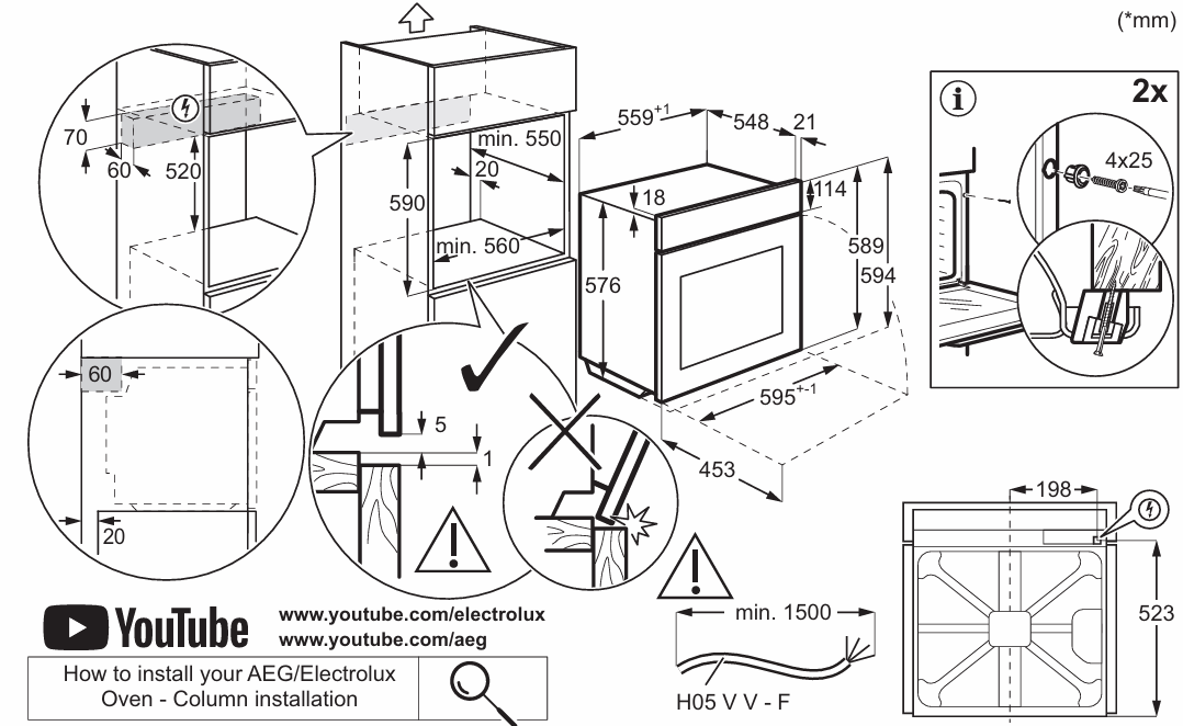 Electrolux EOF3F50TX - схема с размерами версия 3 к духовому шкафу на разных языках на Hausdorf