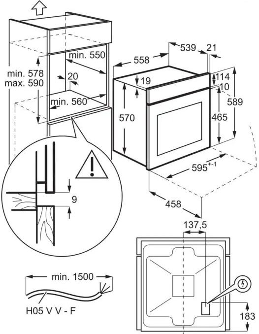 Сохранить файл: Схема с размерами к Electrolux EOF5C50BZ.JPG, 64.12 Кб