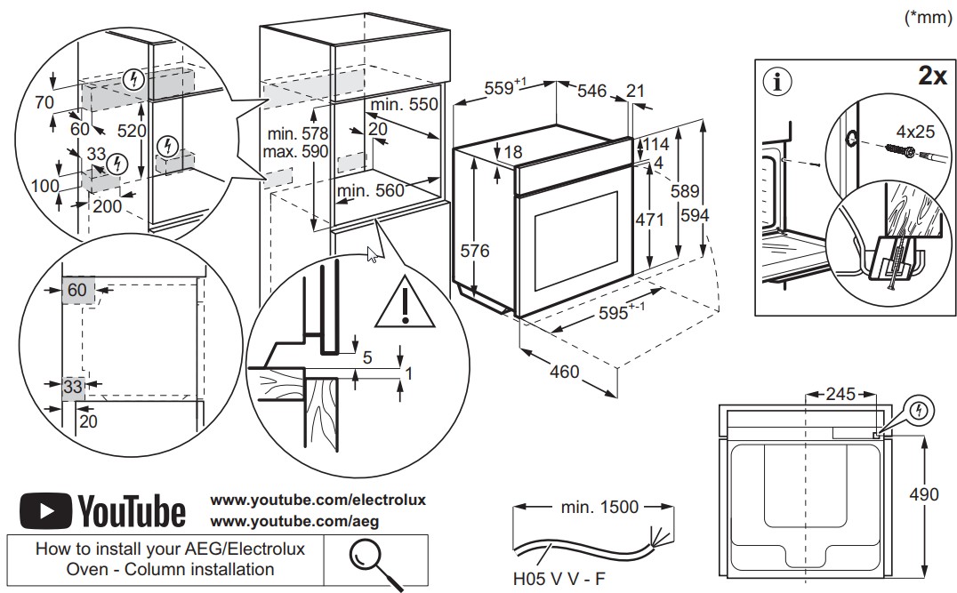 Electrolux KOBBS39WX - схема с размерами версия 3 к духовому шкафу на разных языках на Hausdorf