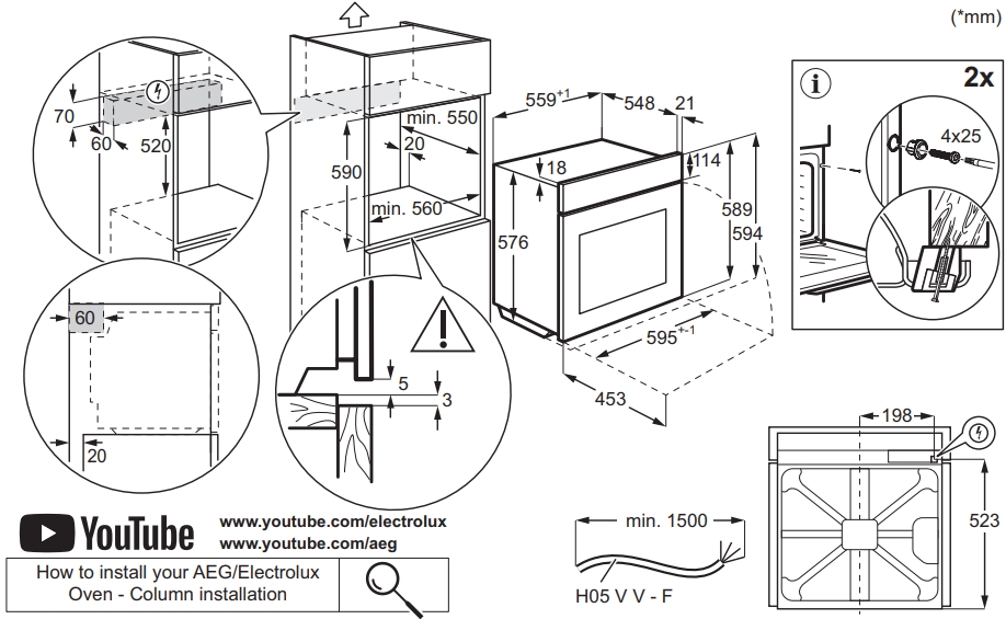 Electrolux KODEF75X2 - схема с размерами версия 3 к духовому шкафу на разных языках на Hausdorf