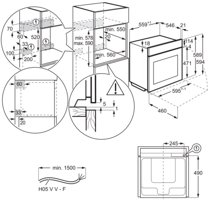 Electrolux KOEAP31WT - схема встраивания с размерами к духовому шкафу на разных языках на Hausdorf