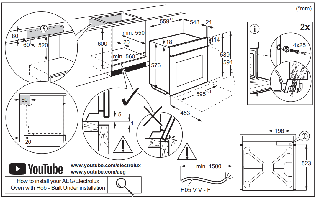 Electrolux LOE8F38X - схема встраивания к духовому шкафу на разных языках на Hausdorf