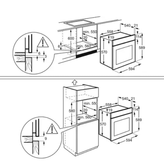 Electrolux OKH5E40X - схема с размерами версия 2 к духовому шкафу на разных языках на Hausdorf