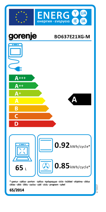 Gorenje BO637E21XG-M - класс энергоэффективности к духовому шкафу на разных языках на Hausdorf