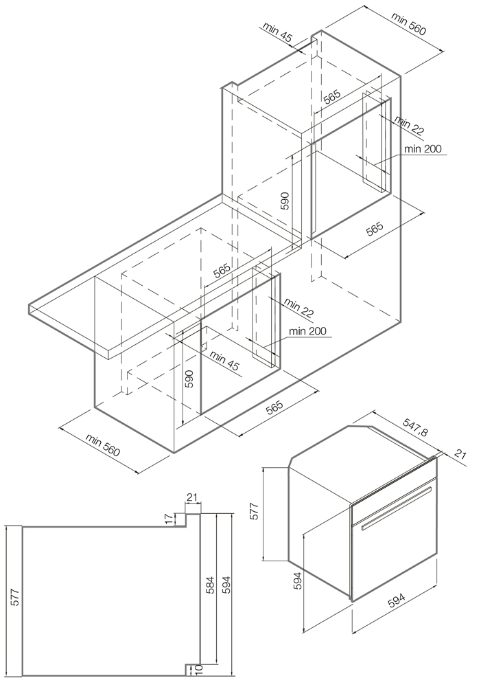 Graude BMP 60.3 GE - схема встраивания к духовому шкафу на разных языках на Hausdorf