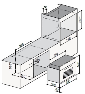 Ilve 600-AMP-A - схема встраивания к духовому шкафу на разных языках на Hausdorf
