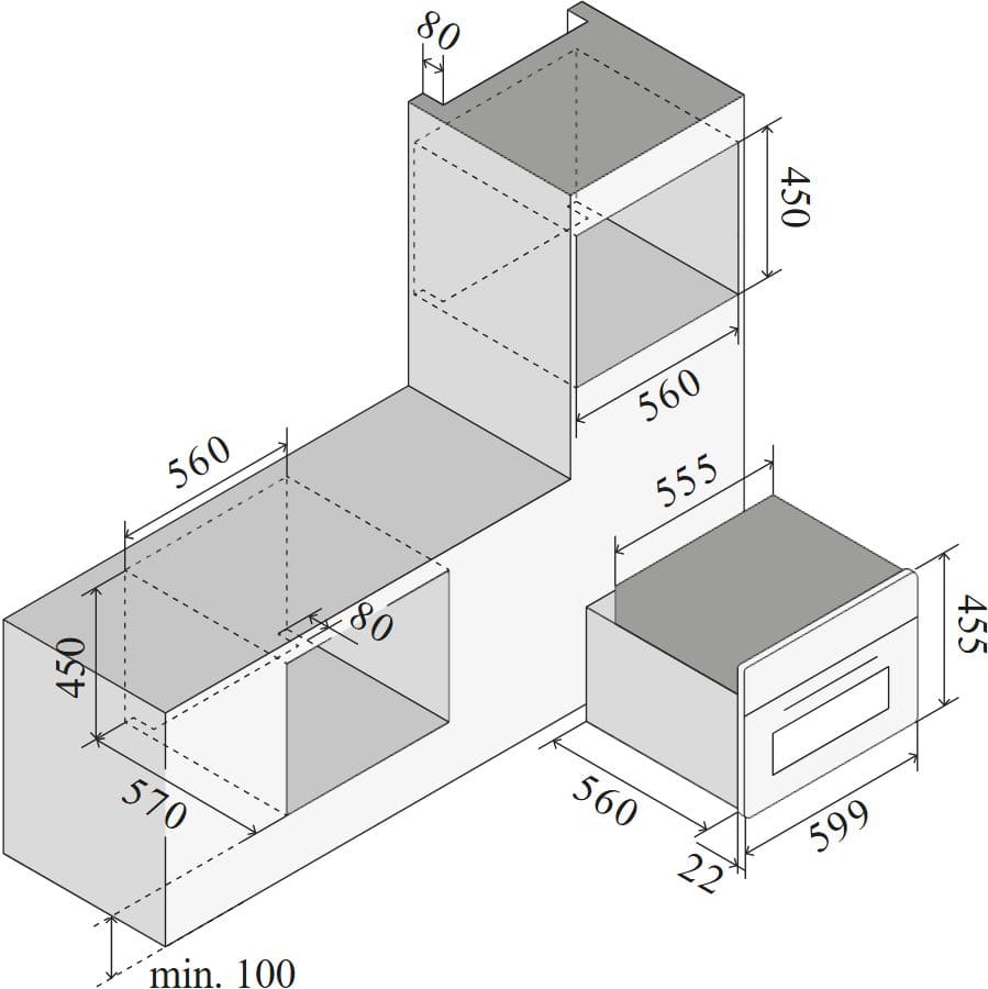 Ilve 645SNHSW/AWG - схема встраивания к духовому шкафу на разных языках на Hausdorf