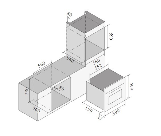 Ilve OV60-SNT3/MGB - схема встраивания для OV60-SNT3_MGB к духовому шкафу на разных языках на Hausdorf