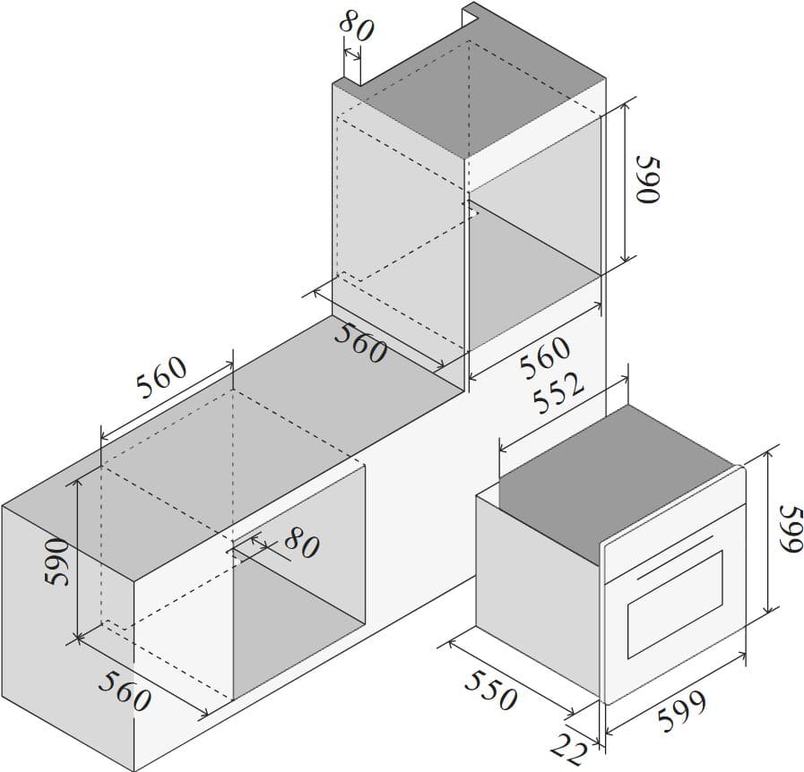 Ilve OV601GT3/BK - схема встраивания к духовому шкафу на разных языках на Hausdorf