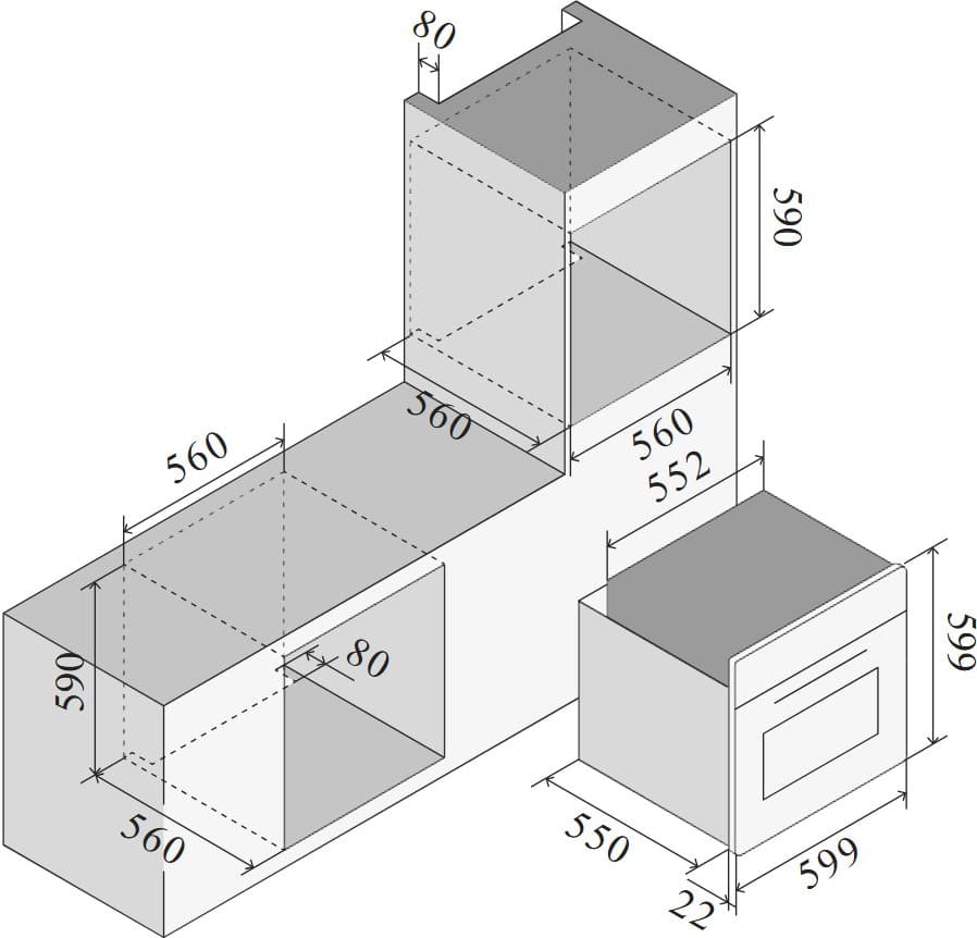 Ilve OV601GTPY/BK - схема встраивания к духовому шкафу на разных языках на Hausdorf