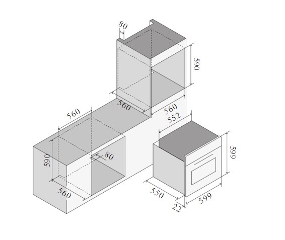 Ilve OV60SNT3/AWB - схема встраивания к духовому шкафу на разных языках на Hausdorf