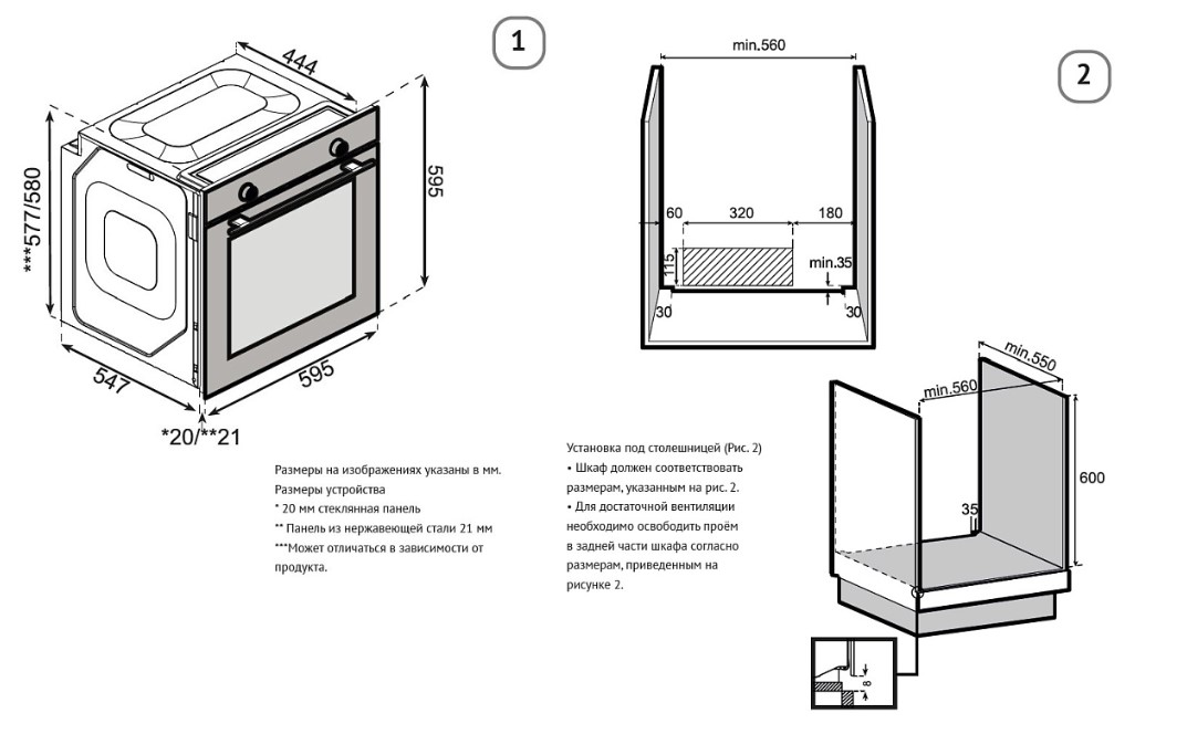 Korting OKB 61031 QGN - схема с размерами версия 2 к духовому шкафу на разных языках на Hausdorf