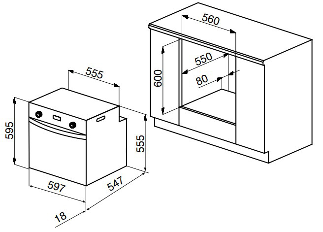 Korting OKB 762 CMN - схема встраивания к духовому шкафу на разных языках на Hausdorf