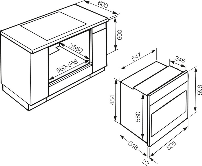Miele H 4312 E - схема встраивания к духовому шкафу на разных языках на Hausdorf