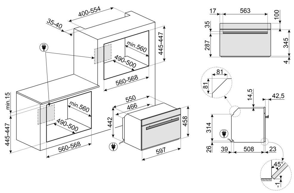Smeg SO4602M1NR - схема с размерами версия 2 к духовому шкафу на разных языках на Hausdorf