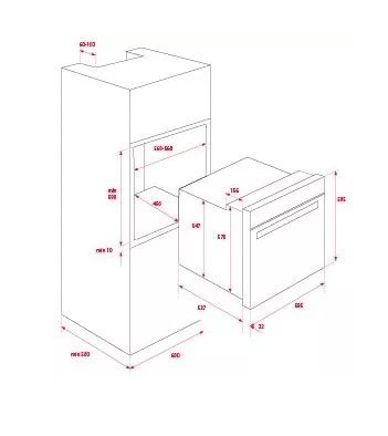 Teka HSB 640 WH - схема с размерами к духовому шкафу на разных языках на Hausdorf