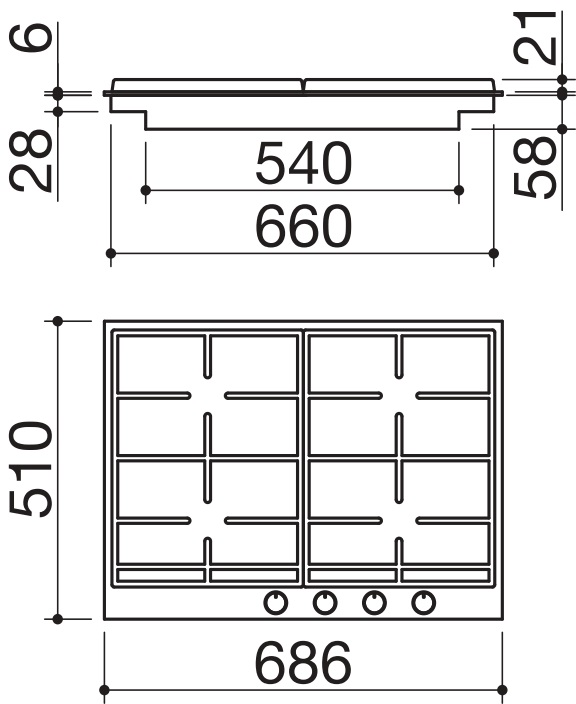 Barazza 1PBF74 - схема с размерами к варочной панели на разных языках на Hausdorf