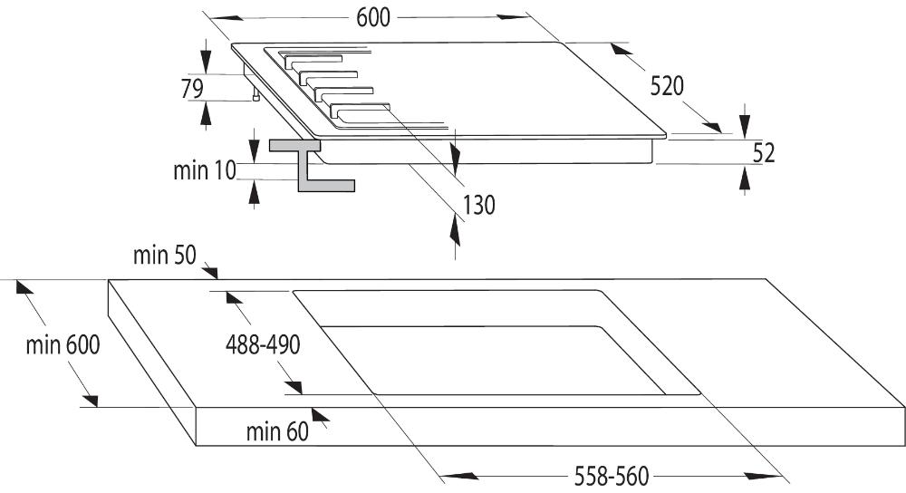 Gorenje GW641CLI - схема встраивания с размерами к варочной панели на разных языках на Hausdorf