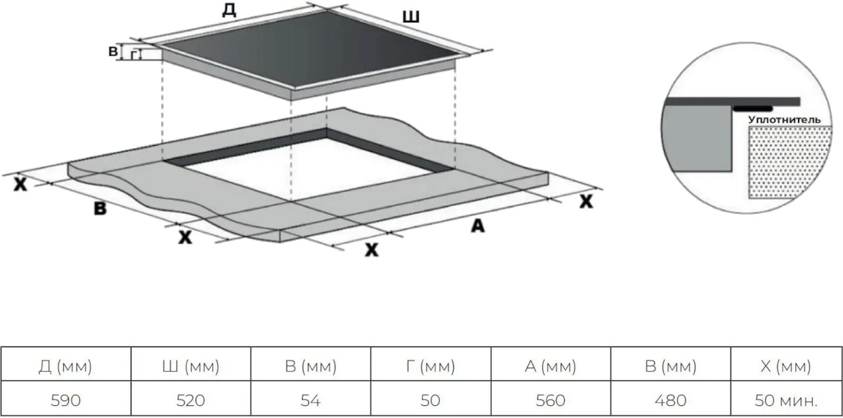 Haier HHK-Y64SCVB - схема встраивания к варочной панели на разных языках на Hausdorf