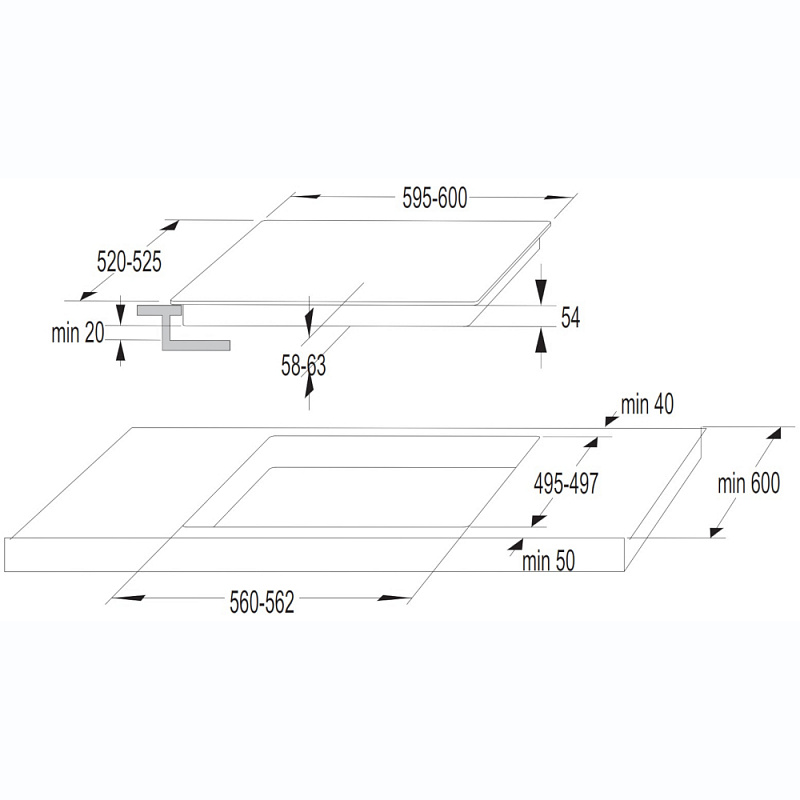 Korting HI 64042 B - схема встраивания с размерами к варочной панели на разных языках на Hausdorf