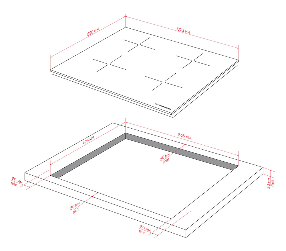 Kuppersberg ICI 607 - схема встраивания к варочной панели на разных языках на Hausdorf