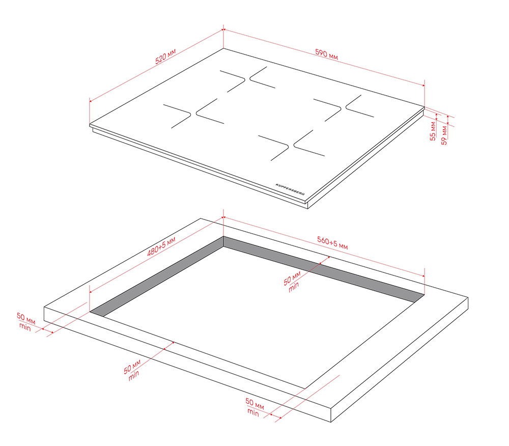 Kuppersberg ICI 609 - схема встраивания к варочной панели на разных языках на Hausdorf