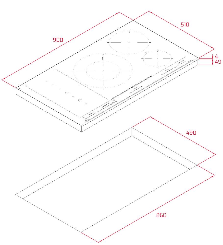 Teka IZS 97630 MST BLACK - схема встраивания с размерами к варочной панели на разных языках на Hausdorf