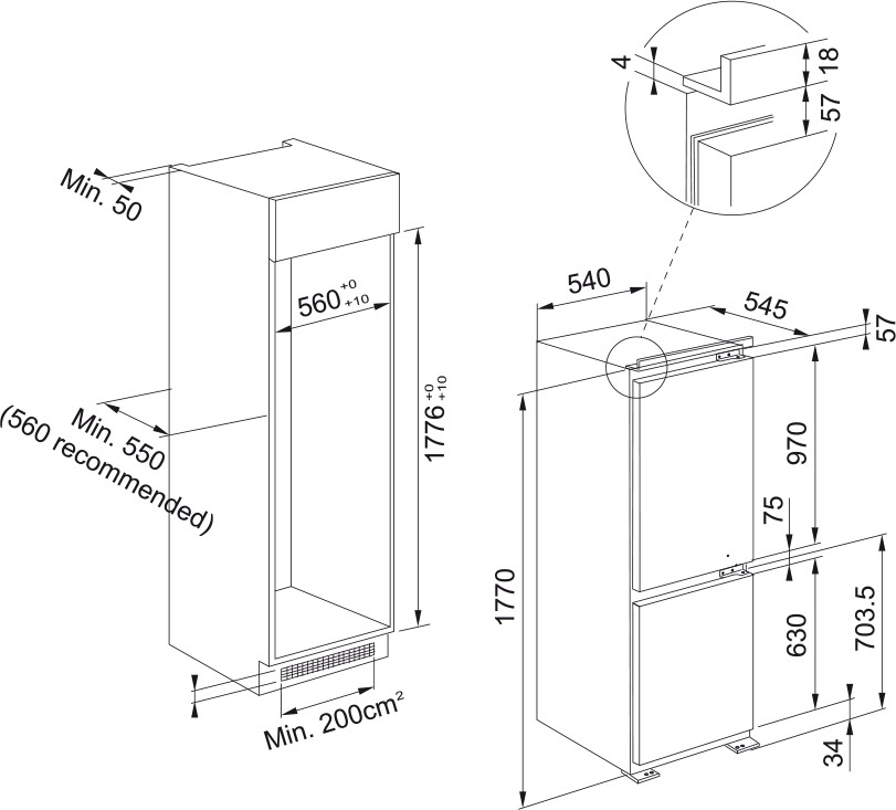 Franke FCB 320 NE E - схема встраивания для к холодильнику на разных языках на Hausdorf