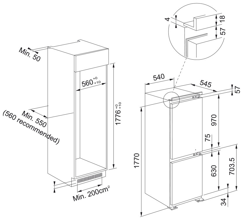 Franke FCB 320 S NE E - схема встраивания к холодильнику на разных языках на Hausdorf